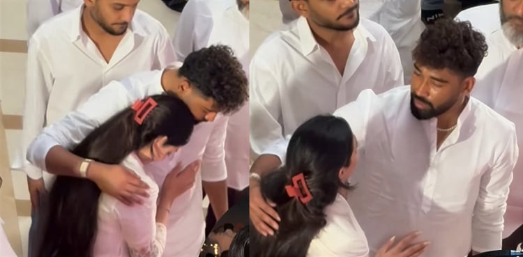 In the footage from the Bhosle residence, Mohammed Siraj is seen navigating a large crowd of friends, relatives, and admirers who had gathered for the darshan. He appears to be searching for Zanai; when he finally locates her, the situation becomes intensely emotional. Overcome with grief, Zanai turns to Siraj for comfort, resting her head on his chest as he stands by her side to support her.
